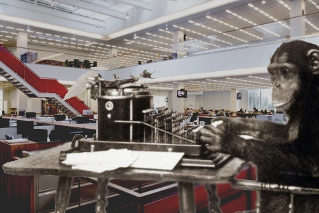 OK. There, it’s out. Whew. We’ve been walking into the Bunker walls today feeling disoriented posting that we agreed with Friedman although perhaps for different reasons. If the whole 1,000 monkeys and typewriters thing is true, those poor chimps. Chained and typing beginning in 1997 to get this one column.