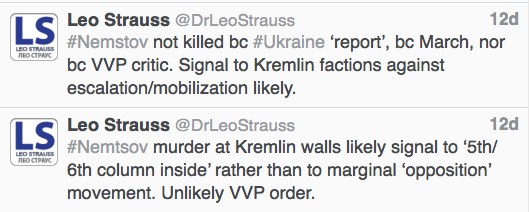 Boris Nemtsov’s heart breaking execution provoked more than outrage. Much informed and emotive opinion quickly converged: Putin personally ordered the assassination. The murder’s audacity and brazen proximity to the Kremlin pointed to sanctioned activity. Speculation invoked dark Soviet precedents like Kirov’s 1934 death or (more improbably) 1937’s mass terror.