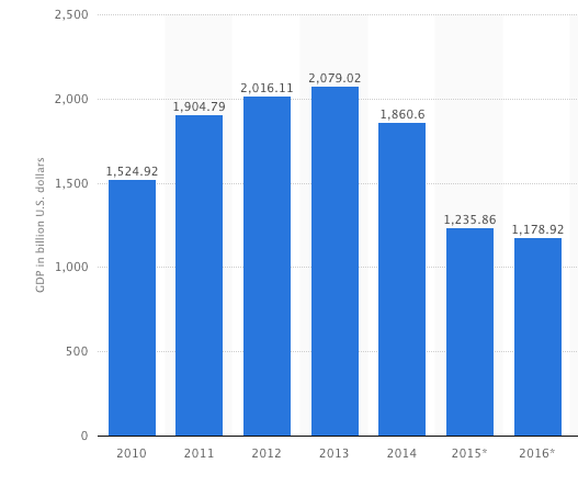 More worrying for Moscow, oil and gas revenues constitute 44% of the federal budget. The resulting $38 billion deficit led to panicked efforts to raise revenue from new taxes or rushed privatization. Even the formerly sacrosanct defense budget is being cut by 5%. Delays in paying defense contracts and salaries led to an “unprecedented revolt” in 2016 by regional defense enterprises.
